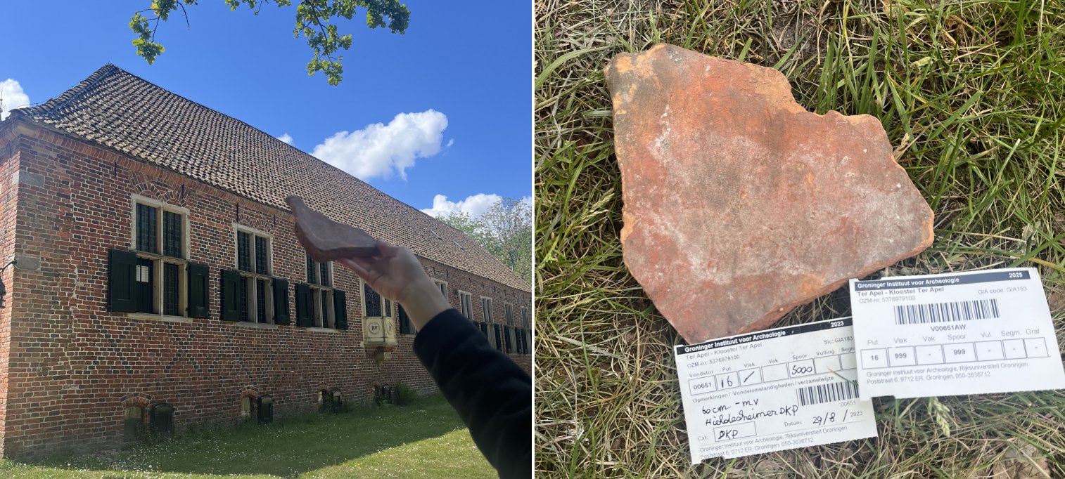 Een veelvoorkomende materiaalgroep die men rond het kloosterrein vindt zijn natuurlijk dakpannen. Hierbinnen zijn meerdere types van dakpannen te herkennen. Neem bijvoorbeeld de Hildesheimer dakpan; een tamelijk zeldzame soort die niet veel in Nederland wordt teruggevonden. Zodoende is er bij het klooster in Ter Apel toch sprake van dit soort dakbedekking, waarvan wij ook delen terugvinden in de bodem.