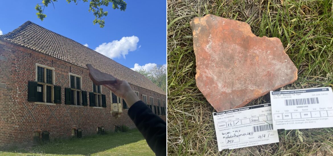 Een veelvoorkomende materiaalgroep die men rond het kloosterrein vindt zijn natuurlijk dakpannen. Hierbinnen zijn meerdere types van dakpannen te herkennen. Neem bijvoorbeeld de Hildesheimer dakpan; een tamelijk zeldzame soort die niet veel in Nederland wordt teruggevonden. Zodoende is er bij het klooster in Ter Apel toch sprake van dit soort dakbedekking, waarvan wij ook delen terugvinden in de bodem.