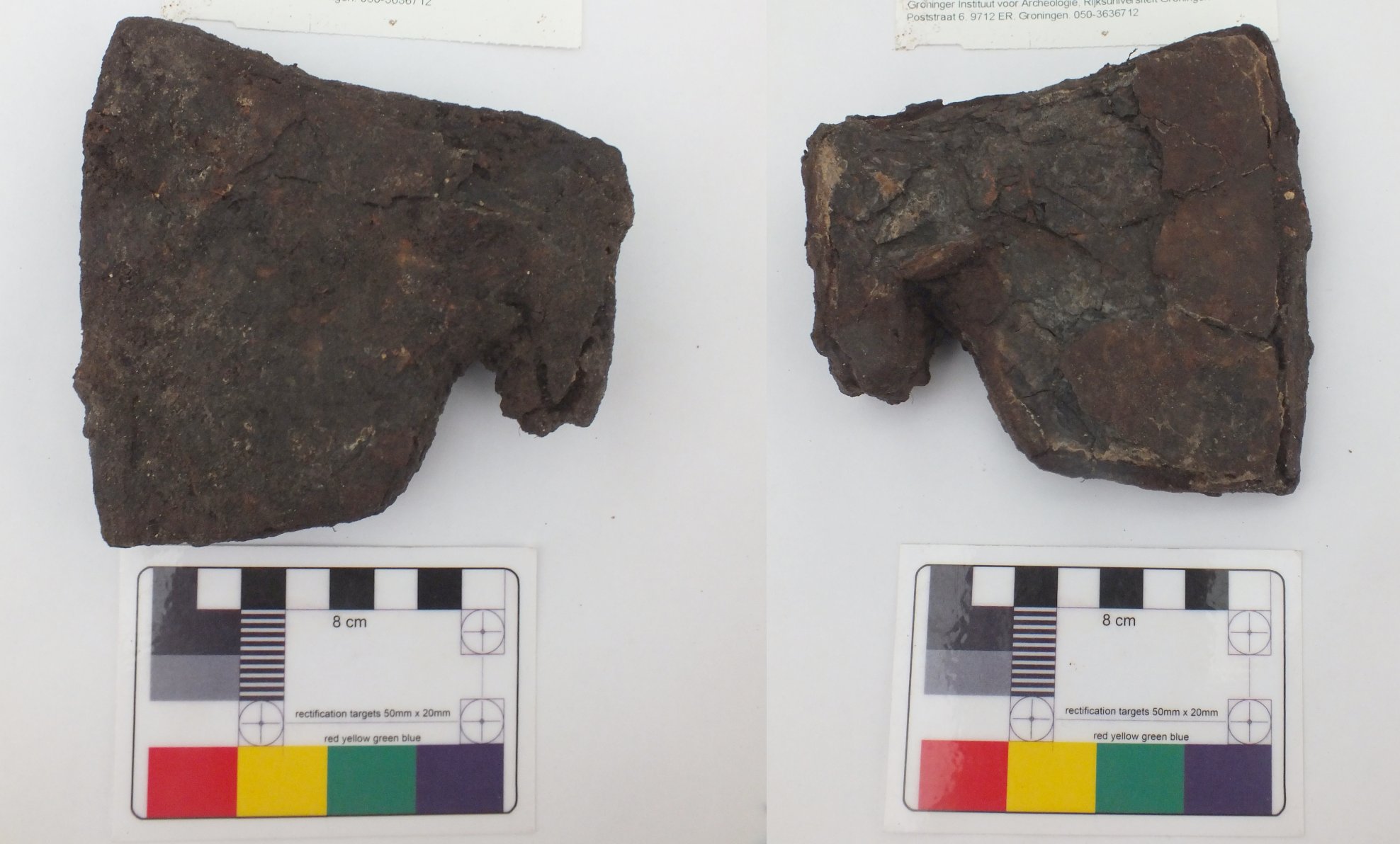 In de op het laatst aangelegde werkput 27 is een ijzeren bijlhoofd uit de puinlaag in de putwand getrokken. Het metaal is erg kwetsbaar en begint al te delamineren: de verschillende laagjes ijzer zijn langzaam aan het loslaten. Het bijlhoofd is afgebroken bij de schacht, die van hout was en al vergaan is in de grond, waardoor het oog, het punt waar de schacht in het metaal zit, niet meer geheel intact is.