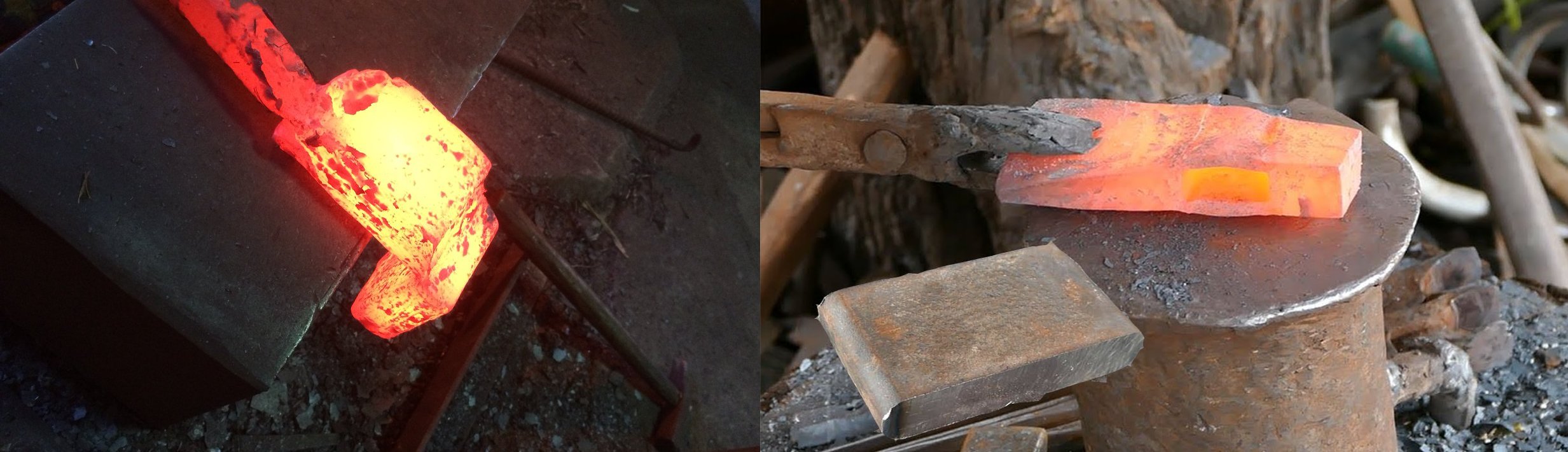 Het ijzer is aan het delamineren. Hierdoor kunnen we de laagjes onderscheiden waarin het ijzer wordt gevouwen tijdens het smeedproces. Staal bestaat uit ijzer met koolstofdeeltjes, die het staal minder poreus maken en een sterkere verbinding creëren in het staal. Te veel koolstofdeeltjes zorgen er echter voor dat het staal weer poreus wordt. Daarom zoekt een smid naar de goede verhouding, zodat het ijzer zo sterk mogelijk wordt. Dit wordt gedaan door het vouwen van verhit staal tijdens het smeedproces, waardoor het koolstof uit het metaal wordt geperst en er minder koolstof in het staal blijft zitten. Als de juiste verhouding bereikt wordt het staal in een vorm geslagen, in dit geval in de vorm van een bijlhoofd.